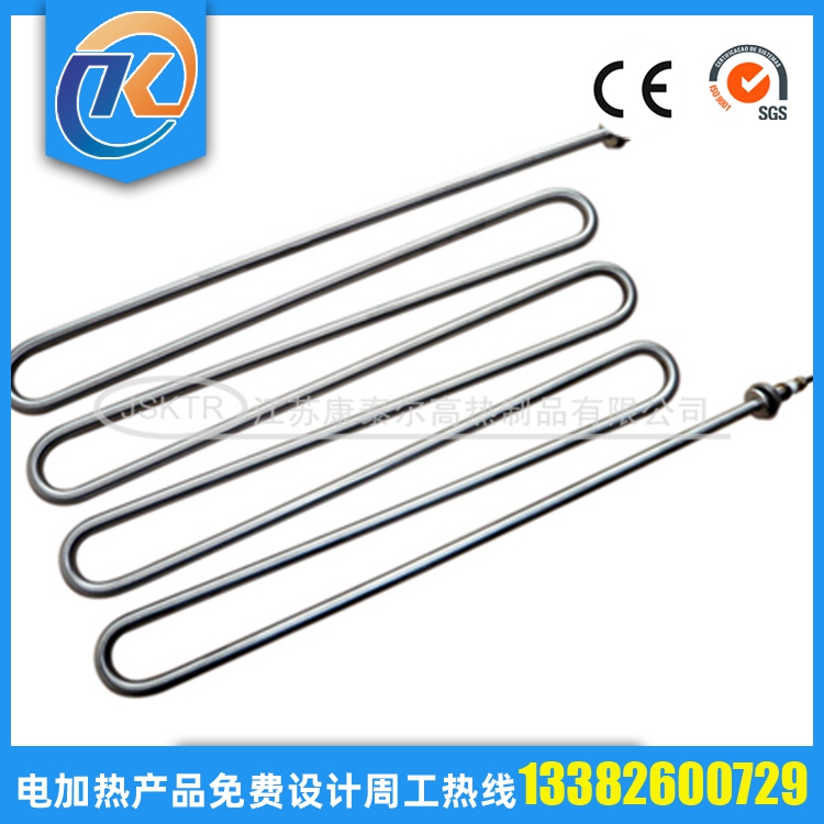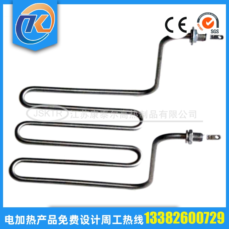 法蘭電加熱管(也稱插入式電加熱器):是采用U型電熱管,依據(jù)加熱的空氣或者水油等來設(shè)計,按照功率配置要求裝配在法蘭蓋上,插入需加熱物料中,當(dāng)介質(zhì)溫度達(dá)到工藝要求時,持續(xù)保持加熱;而當(dāng)發(fā)熱元件超溫或低液位時,發(fā)熱元件的聯(lián)鎖保護(hù)裝置立即切斷加熱電源避免發(fā)熱元件燒壞,延長使用壽命。 應(yīng)用范圍 法蘭電熱管訂購參數(shù): 1.電壓,功率; 2.材質(zhì); 3.管徑; 4.長度; 5.數(shù)量; 6.加熱什么,長期溫度多少; 7.加熱管類型;